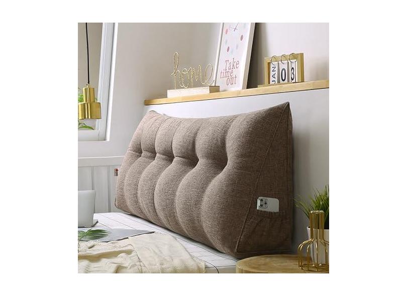 Travesseiro de cabeceira para cama, almofada de cabeceira triangular grande com bolso grande, almofadas de linho para cama almofada traseira travesseiro longo com capa removível, Coffee-King