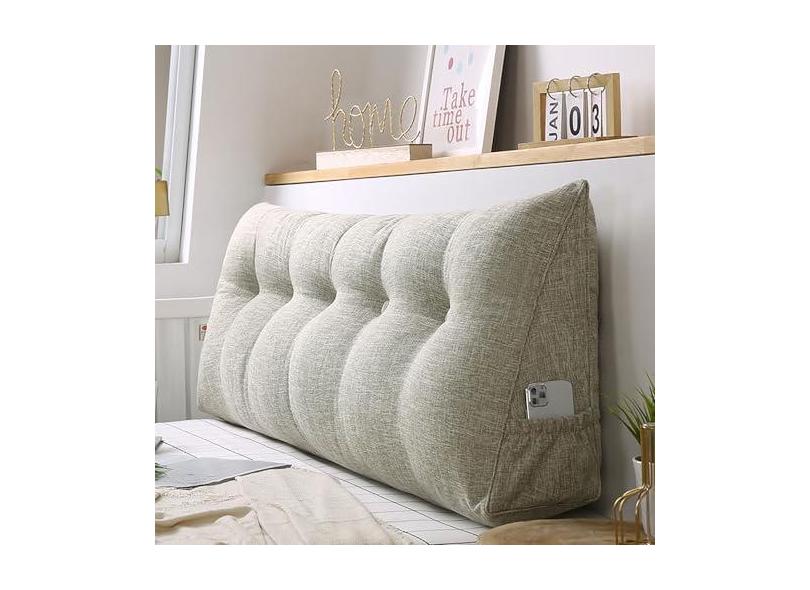 Travesseiro de cabeceira para cama, almofada de cabeceira triangular grande com bolso grande, almofadas de linho para cama almofada traseira travesseiro longo com capa removível, verde-oliva