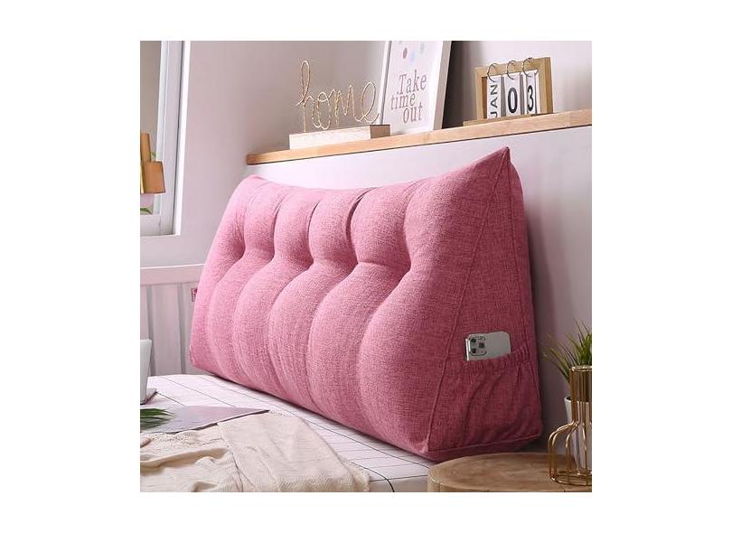 Travesseiro de cabeceira para cama, almofada de cabeceira triangular grande com bolso grande, almofadas de linho para cama almofada traseira travesseiro longo com capa removível, vermelho begônia -