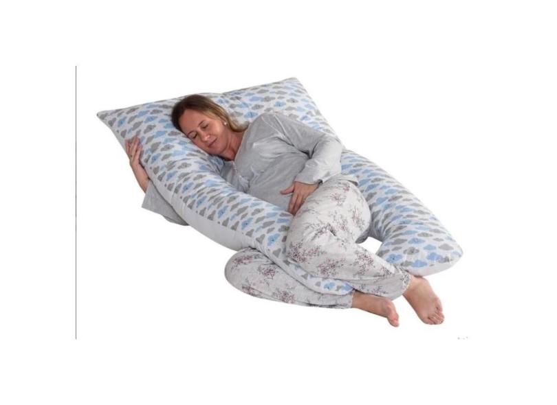 Travesseiro Que Abraça Formato U Tamanho Grande Grávida Gestante Estampado Nuvem Azul 1,30 Metros de Silicone