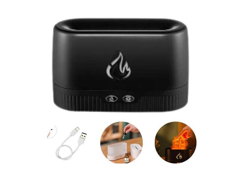 Difusor Umidificador De Ar Óleo Essencial Chama 230ml Led Cor Preto