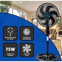 Ventilador Chão Solaris Fs1608 Preto Com 6 Pás De Plástico, 50 cm De D