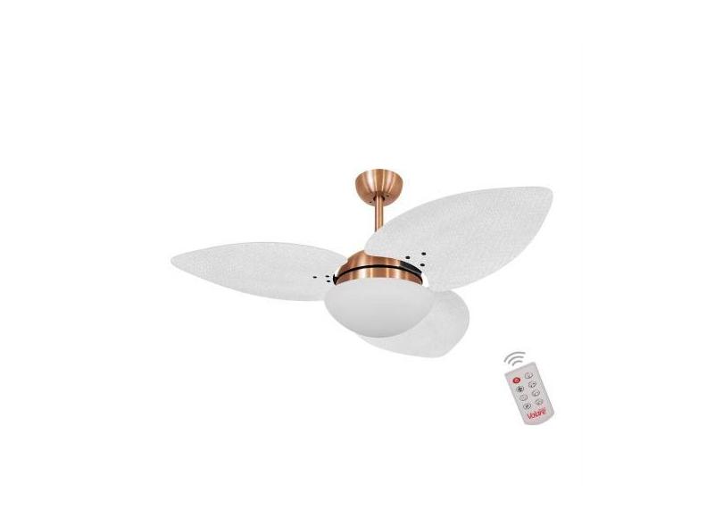 Ventilador De Teto Kovalski Cobre 3 Pás Palmae Branco 127V Com Control