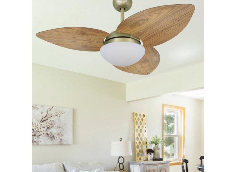 Ventilador De Teto Vidro Fechado Dunamis Pá S3 Rádica Freijó Volare Ouro Velho