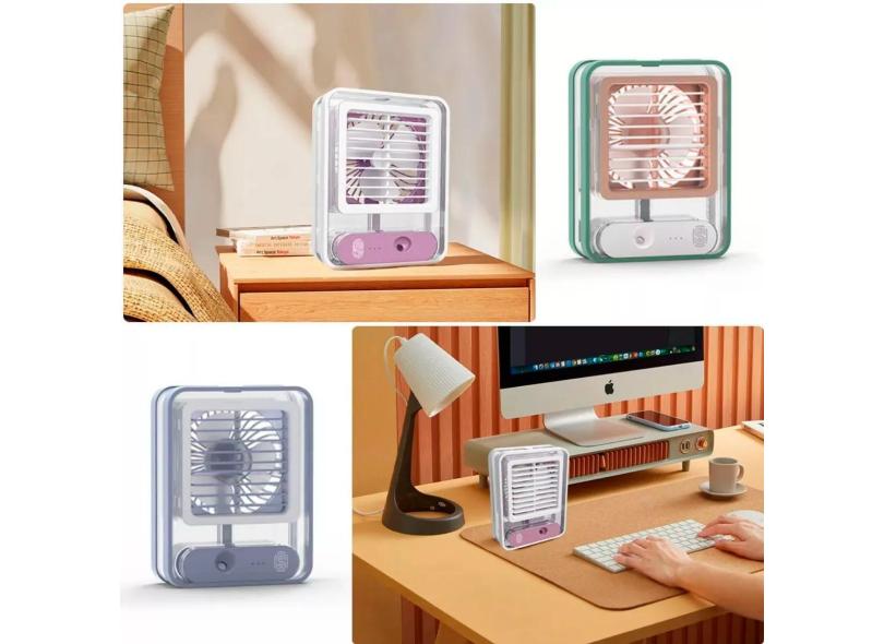 Ventilador Portátil Umidificador Led 3 Velocidades 15X18 Cm