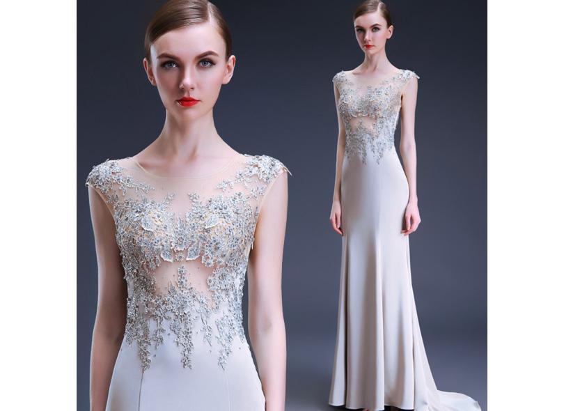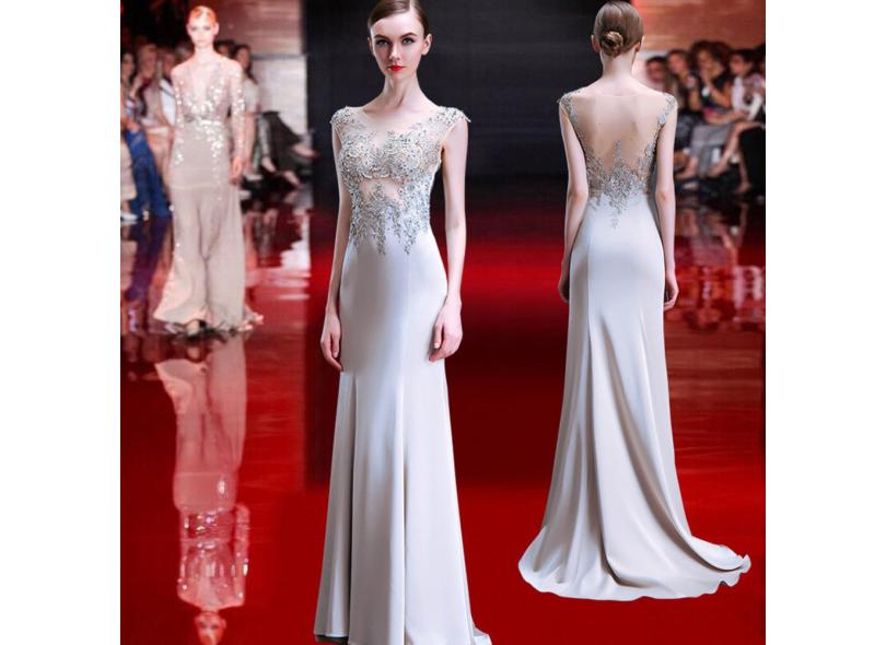 Vestido De Noite Sereia De Luxo Sexy Rabo De Peixe Fino Sem Mangas Rendas Apliques Vestidos Para As