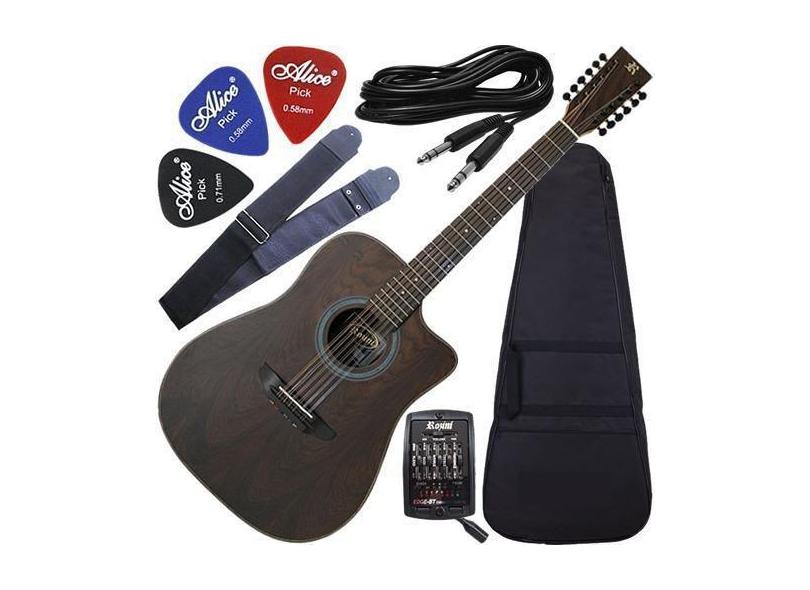 O menor preço encontrado no Brasil para Kit Violão Eletroacústico Folk Aço 12 Cordas Rx415at Rozini atualmente é R$ 5.036,09.