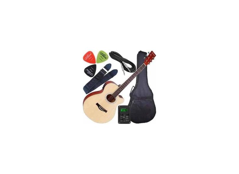 Kit Violão Folk Aço Eletroacústico Giannini Natural Gsf1r Nf