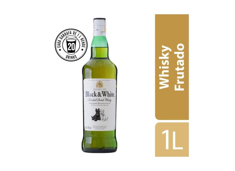 Whisky Escocês Blended Black & White Garrafa 1 Litro